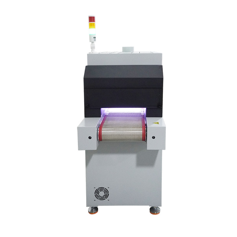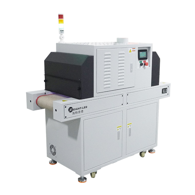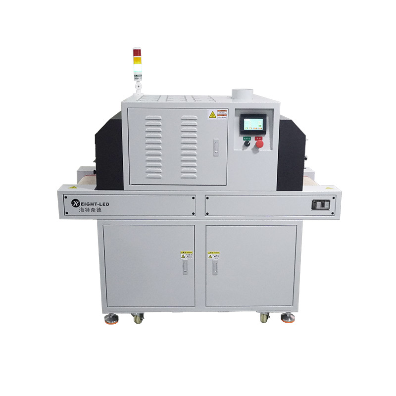 2、設(shè)備提供連續(xù)模式和后端模式、步進(jìn)模式可選,連續(xù)模式下,點擊啟動按鈕,UV機傳送帶及 UVLED一直工作,點擊停止按鈕停止UV機工作;后端模式下,點擊啟動按鈕,UV機傳送帶及UVLED開始工作,當(dāng)后端傳感器感應(yīng)到產(chǎn)品后,傳送帶及UVLED停止工作,當(dāng)產(chǎn)品拿走后繼續(xù)進(jìn)入下一個循環(huán);步進(jìn)模式下,點擊啟動按鈕,UV機傳送帶開始工作,當(dāng)步進(jìn)傳感器感應(yīng)到產(chǎn)品,傳送帶停止運行,UVLED以步進(jìn)參數(shù)工作,步進(jìn)參數(shù)運行完成后,UVLED關(guān)閉,傳送帶開始工作,當(dāng)后端傳感器感應(yīng)到產(chǎn)品時,傳送帶停止工作,當(dāng)產(chǎn)品拿走后繼續(xù)進(jìn)入下一個循環(huán)。